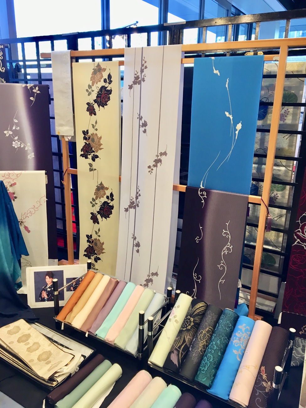 村山先生の蒔糊(まきのり)という難易度の高い染めの技法によって、花達がより華やかに立体感を増していて!私の素人写真で紹介するのでは申し訳ないほどの存在感を放っていました!